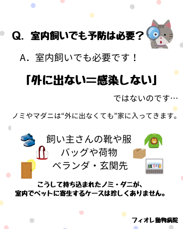 今回は、よくご質問をいただく、冬季の間のノミダニ予防についてご紹介いたします✨